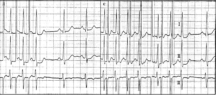 - Чередование приступов фибрилляции с замедлением сердечного ритма.