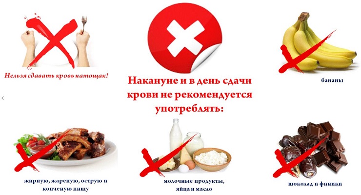 - Употребление неправильной пищи перед анализами. Важно помнить, что за 24 часа до сдачи крови следует исключить «вредные» продукты и перейти на более полезные.