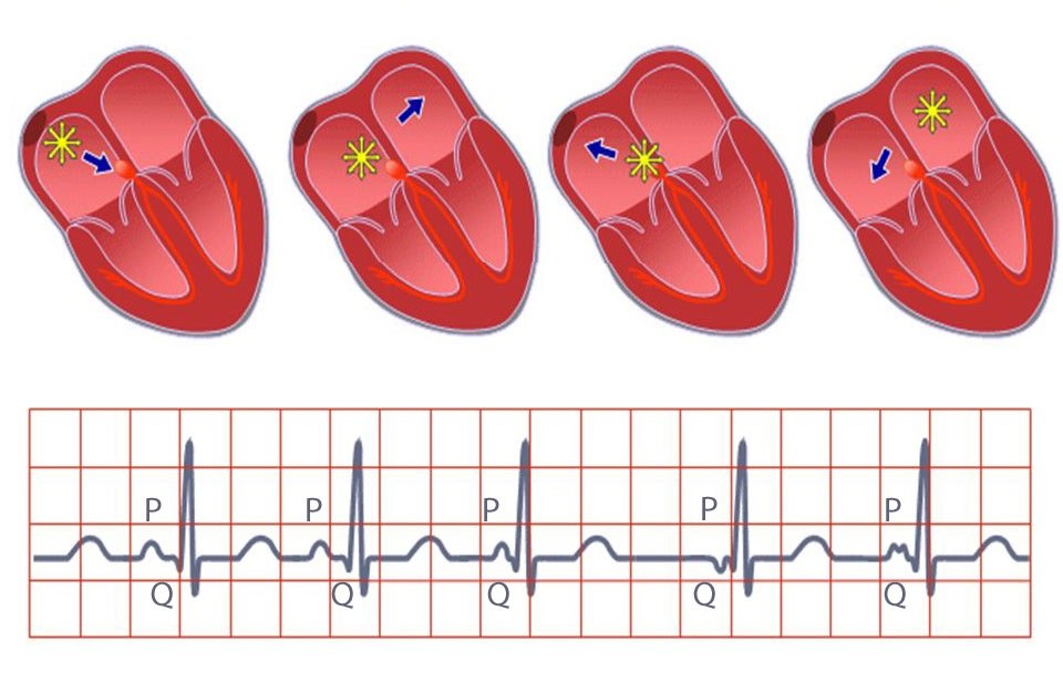 | Определение | Изменение места возникновения электрического импульса в предсердиях, приводящее к изменению формы зубца P на ЭКГ. | Электрический импульс постоянно генерируется в синусовом узле, что обеспечивает стабильную форму зубца P. |