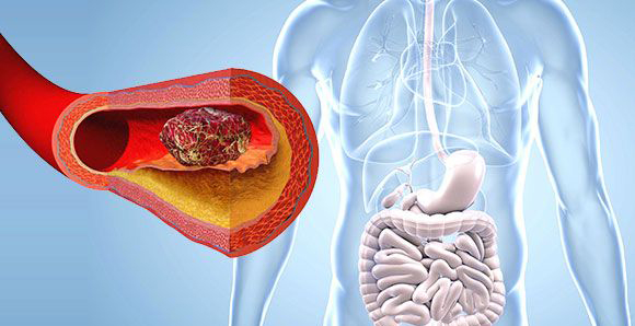 Тромботические. Омертвение тканей возникает из-за закупорки мезентериальных сосудов, которые обеспечивают кровоснабжение различных участков кишечника. Чаще всего тромбы блокируют просвет артерий в области устья брыжеечной артерии. Причинами тромбирования сосудов могут быть нарушения свертываемости крови, тяжелые формы панкреатита, сердечная недостаточность, травмы брюшной полости и опухолевые образования.