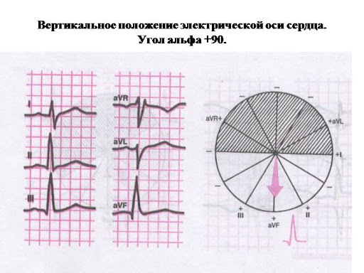 - Полувертикальное. ЭОС располагается параллельно второму отведению, угол альфа составляет 70-90°С.