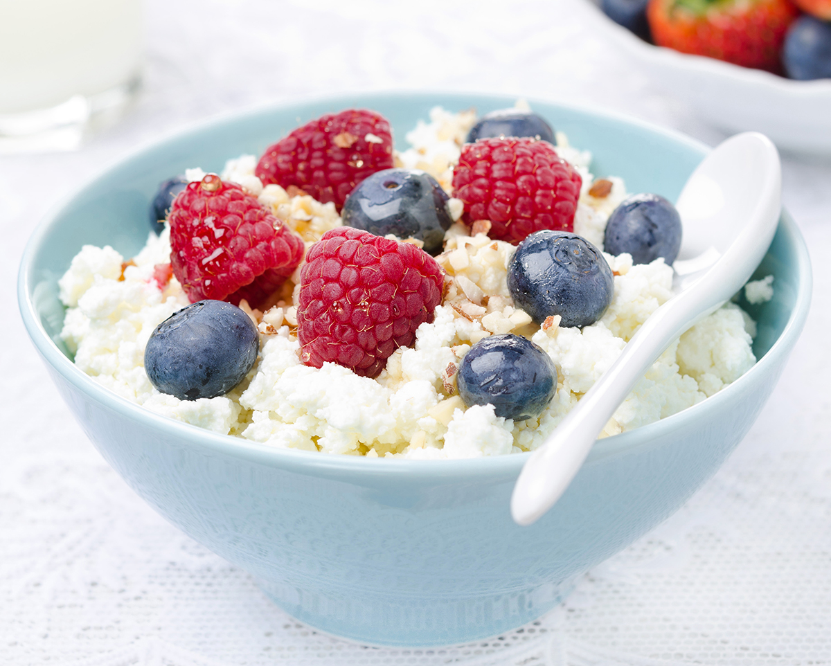 - Полдник — 150 граммов нежирного творога с свежими ягодами.