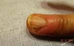 - Онихомадезис — отторжение ногтя у основания, возможен воспалительный процесс. Обычно возникает из-за травмы.