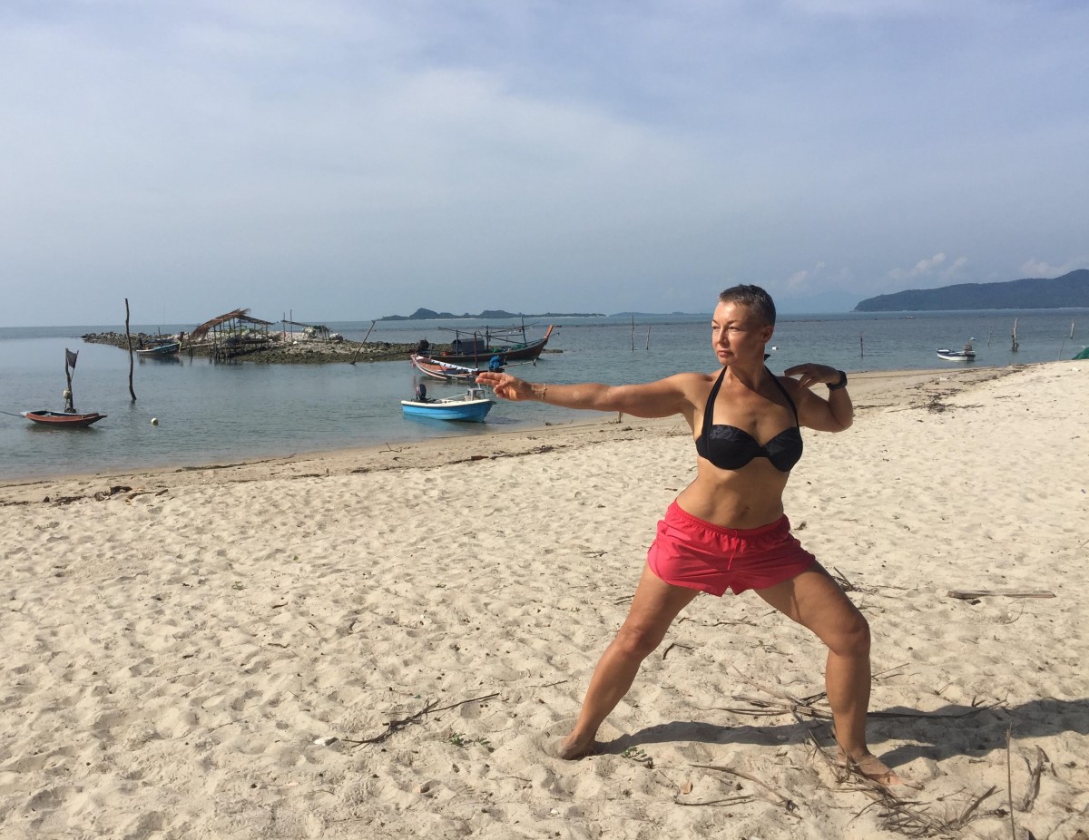 - Выполняйте аккуратные захлёсты руками в стороны с легким поворотом корпуса.