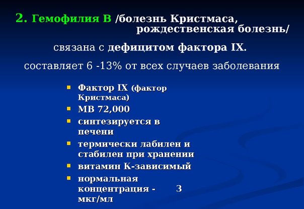 Гемофилия «B» представляет собой одну из форм этого заболевания, которая связана с отсутствием в крови «фактора Кристмаса», отвечающего за свертываемость. Основной причиной возникновения недуга являются наследственные гены, переданные от родителей. Тем не менее, гемофилия «B» имеет свои уникальные особенности. Одной из них является то, что кровотечения могут начинаться спустя значительное время, и остановить их бывает непросто. Это связано с низкой способностью крови к свертыванию. При гемофилии «B» также часто наблюдаются случаи кровоизлияний в костные ткани, что может вызывать у человека сильные болевые ощущения.