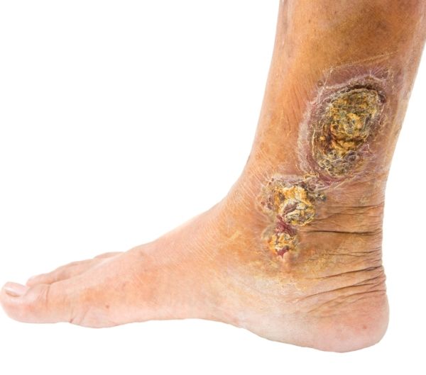 Язвы чаще всего поражают голени и стопы, где лечение дефектов кожи может быть крайне сложным и длительным, занимая более одного месяца.