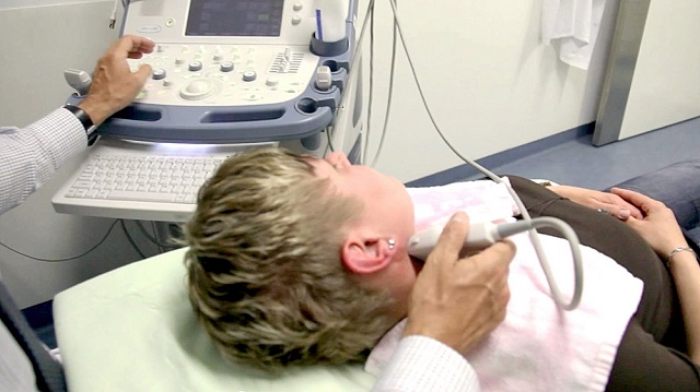 Перед началом УЗИ пациенту необходимо снять все украшения с области шеи и занять положение лежа или сидя, в зависимости от того, какая зона будет исследоваться. Врач-диагност наносит на кожу головы или шеи специальный гель и устанавливает ультразвуковой датчик. Информация с датчика отображается на экране компьютера. Процедура обычно занимает около 30 минут и может быть дополнена другими методами исследования.