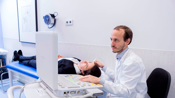 Для точной диагностики в некоторых случаях используется ультразвуковое исследование с функциональными тестами, что позволяет оценить кровоток и состояние сосудов головы и шеи. Одним из самых простых методов является изменение положения тела во время исследования или пальцевое сжатие сосудов. После закрытия просвета сосудов анализируются коллатеральные пути (дополнительные ответвления). Еще один метод включает прием Нитроглицерина, который способствует расширению кровеносных сосудов. После его действия наблюдается за скоростью кровотока и степенью расширения просвета сосудов.