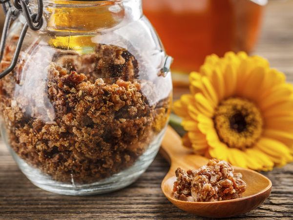 Если маточное молоко недоступно, мед можно смешать с пыльцой в равных пропорциях. Это средство также принимается трижды в день, но в увеличенной дозировке – по 2 чайные ложки.