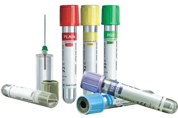 Забор крови с помощью вакуумной пробирки с коричневой или красной крышкой осуществляется для серологических и биохимических исследований. Внутреннее покрытие таких пробирок содержит сыворотку крови. Уровень глюкозы определяется с помощью пробирки серого цвета. Пробирка с розовой крышкой используется в случаях, когда требуется провести исследования, связанные с переливанием крови, а оранжевая пробирка предназначена для анализа сыворотки.