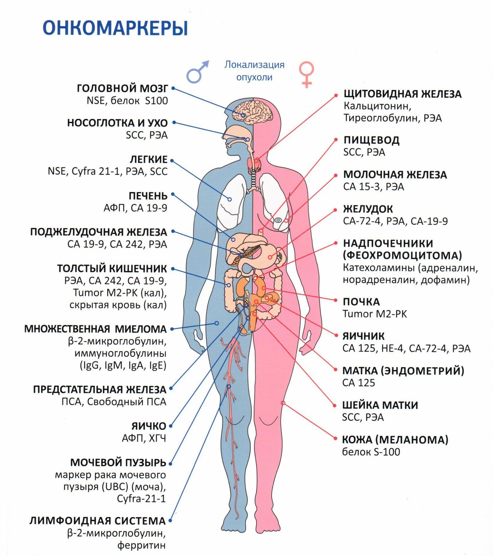 Для справки! Увеличение концентрации каждого конкретного маркера может указывать не только на наличие опухоли, но и на ее возможное местоположение. Это эффективный диагностический метод, позволяющий выявить патологические процессы на ранних стадиях.