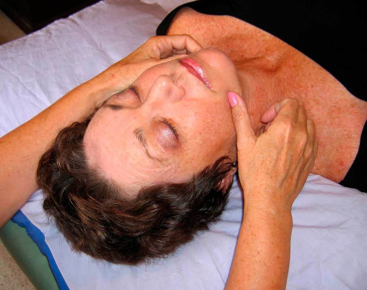 После инсульта массаж лица начинается с области, которая была повреждена, и по мере ее восстановления переходят к массажу обеих сторон лица. Пациент может самостоятельно выполнять все процедуры. Начинают с легких вибраций на голове, уделяя особое внимание затылочной области. Затем ладонь кладут на лоб и выполняют растирающие движения снизу вверх. После этого снова переходят к мягкому массажу головы.
