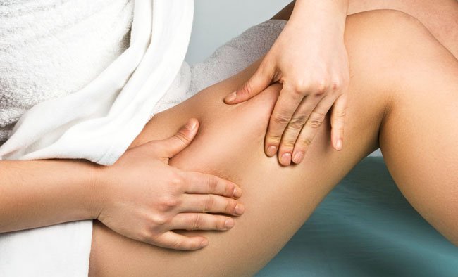 При работе с боковыми частями бедер человек располагается на спине, а для массажа задней поверхности – на боку. Сеанс начинается с ягодиц, двигаясь от копчика к суставам тазовых костей. В области бедра поглаживающие движения можно выполнять в любом направлении, а растирание и вибрацию следует направлять от колена к паху.