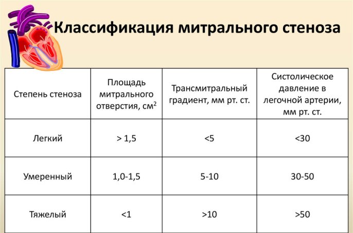 Стеноз митрального отверстия делится на четыре стадии: