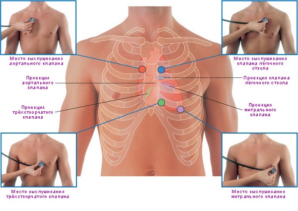 Подозрение на стеноз митрального клапана может возникнуть у врача уже при первом осмотре пациента. Проекция митрального клапана располагается под левым соском. Аускультация, или прослушивание с помощью фонендоскопа, позволяет выявить застойные хрипы в легких. На ранних стадиях заболевания внешние проявления у больных могут отсутствовать.