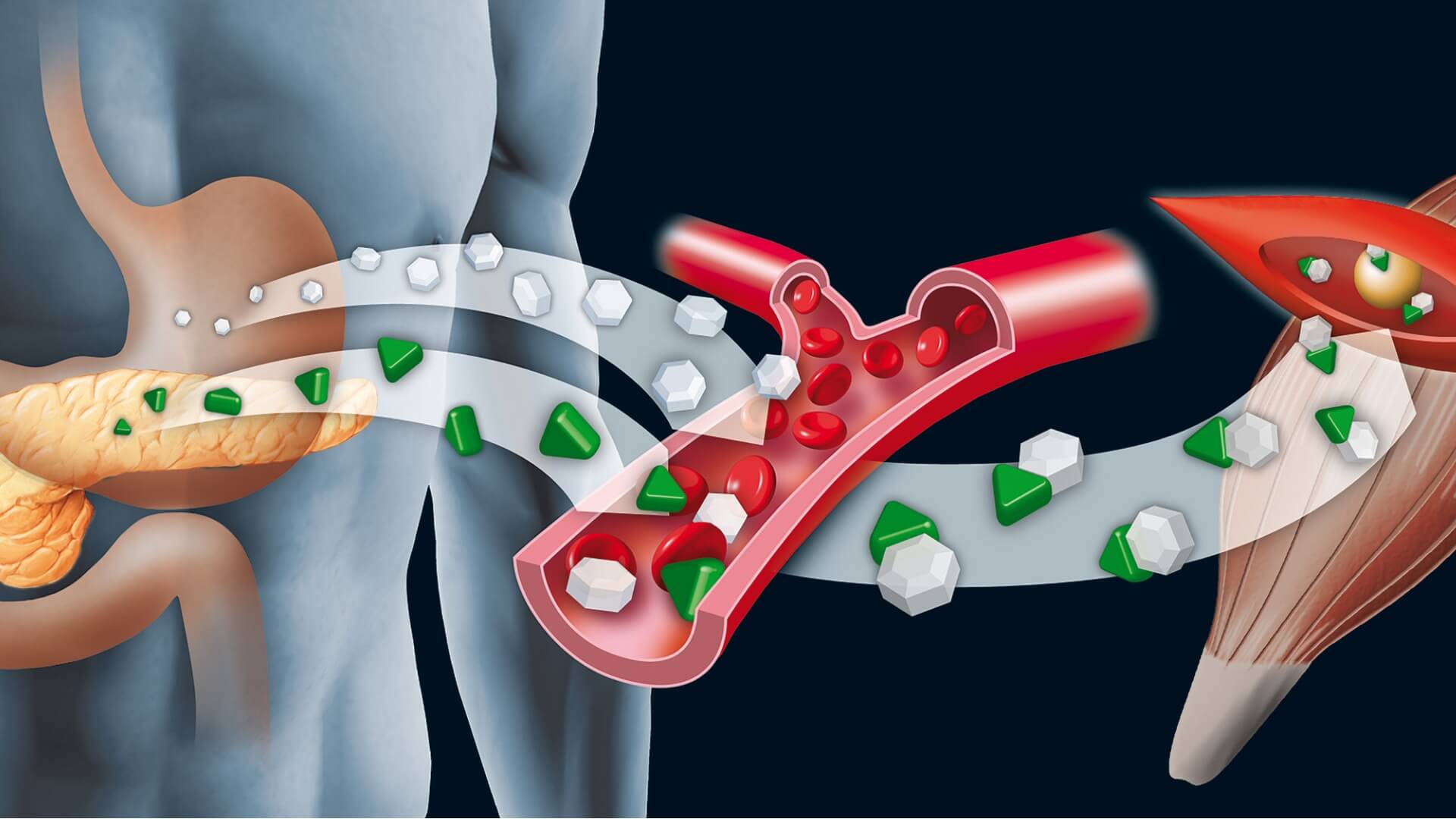 - При недостатке инсулина клетки организма начинают испытывать «голод». Это приводит к активизации печени, которая начинает вырабатывать глюкозу, необходимую организму. Глюкоза образуется из гликогена – полисахарида, который не попадает в кровь до момента, когда возникает необходимость в энергии.