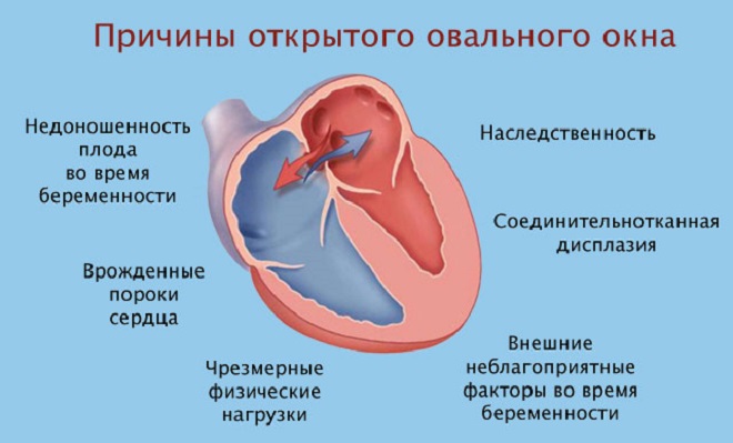 - у пациента развиваются различные заболевания, способствующие повышению давления в правом предсердии, что часто приводит к открытию клапана;