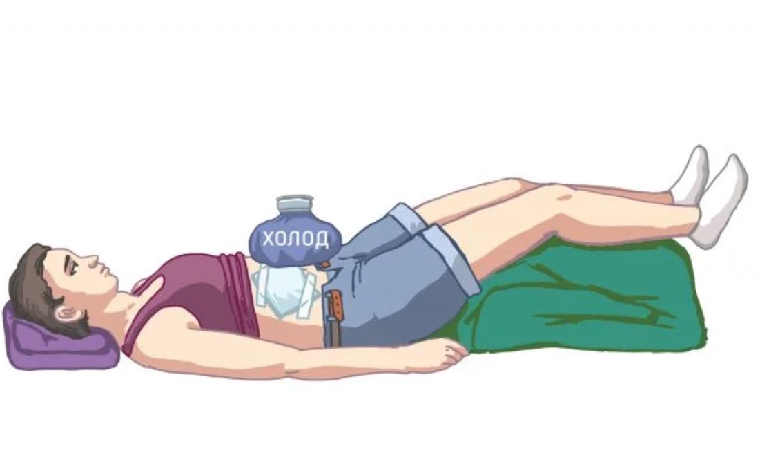 - На живот положить холодный предмет (например, бутылку с льдом или холодной водой), чтобы сузить сосуды и снизить кровотечение.