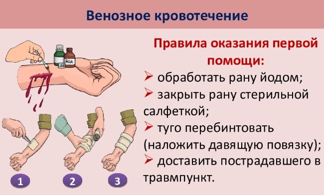 Неотложная помощь при венозном кровотечении осуществляется следующим образом: