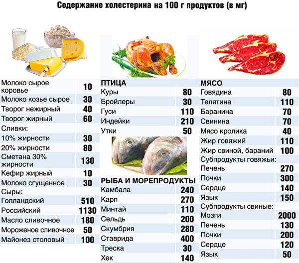 Рекомендуется отказаться от белого жирного мяса, поэтому из меню исключают гусиное и утиное мясо, а также ограничивают потребление куриных яиц. Следует убрать из рациона выпечку на маргарине и масла с высоким содержанием жира, все виды сыров, сметану и йогурт. Полуфабрикаты, промышленная выпечка, сладкие десерты и фастфуд лишь способствуют повышению уровня холестерина в крови и ухудшают общее состояние здоровья, поэтому от них также стоит отказаться.