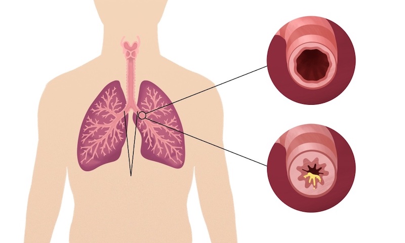 Хроническая обструктивная болезнь легких (ХОБЛ) представляет собой заболевание, при котором происходит сужение бронхов и нарастает одышка, преимущественно при выдохе. Пациенты могут без труда вдохнуть, однако выдох вызывает значительные затруднения. Сужение бронхов при ХОБЛ имеет практически необратимый характер и часто сопровождается влажным кашлем с выделением мокроты. На начальных стадиях заболевания кашель беспокоит в основном утром и в течение дня, но по мере прогрессирования болезни он становится постоянным и может мешать даже ночью.
