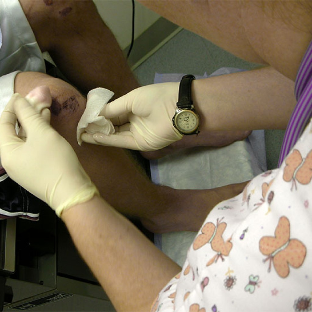 | Уход за кожей | Регулярный уход за кожей вокруг язвы и всей конечности для предотвращения повреждений и сухости. | |