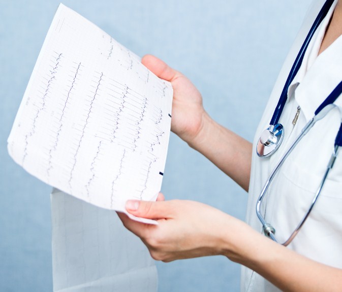При наличии соответствующих жалоб в первую очередь назначается электрокардиограмма. Исследование проводится как в состоянии покоя, так и под нагрузкой. На основе полученных данных определяется ритм и частота сердечных сокращений, а также состояние предсердной и внутрижелудочковой проводимости.
