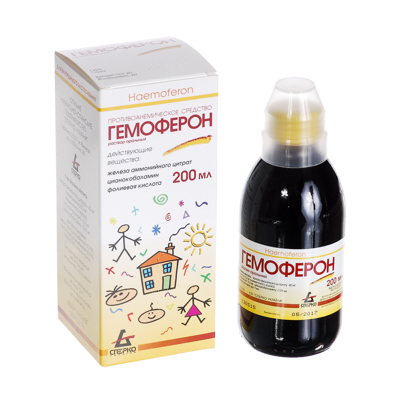 Одним из наиболее распространенных препаратов для поддержания стабильного уровня гемоглобина является сульфат железа, который дополнительно содержит пантотеновую и аскорбиновую кислоты, рибофлавин, пиридоксин, никотинамид и пантотенат кальция. Капли можно назначать детям с первых дней жизни, а сироп — с 1 года.