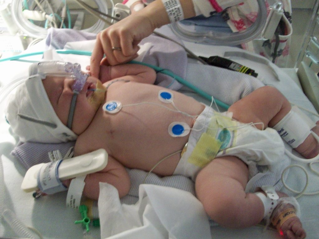 - Интубация в первые 1–2 суток для предотвращения остановки дыхания и улучшения кровоснабжения головного мозга. При необходимости новорожденного переводят на искусственную вентиляцию легких.
