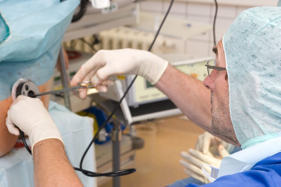 Проктолог начинает процедуру с введения местного анестетика. Затем пациента располагают на кушетке в положении на коленях, опираясь на локти. Алгоритм дальнейших действий выглядит следующим образом: