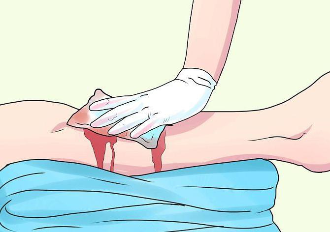 - Применение сжатия поврежденной области или давящей повязки не приводит к снижению интенсивности кровотечения.