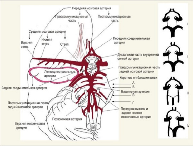Под определение разомкнутого типа Виллизиева круга попадают любые случаи отсутствия, недоразвития или аномального количества артериальных стволов. Однако для понимания, что это означает в дальнейшем, необходимо знать, по какому типу он разомкнут.