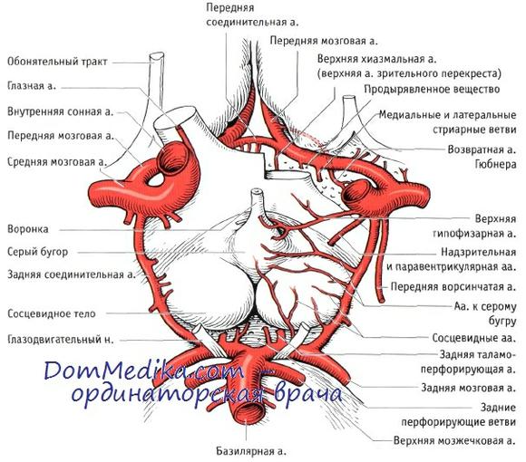 - мозговых артерий (передней и задней);