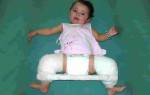- Накладывают гипсовую лонгету от поясницы до пальцев, фиксируя тазобедренный, коленный и голеностопный суставы.